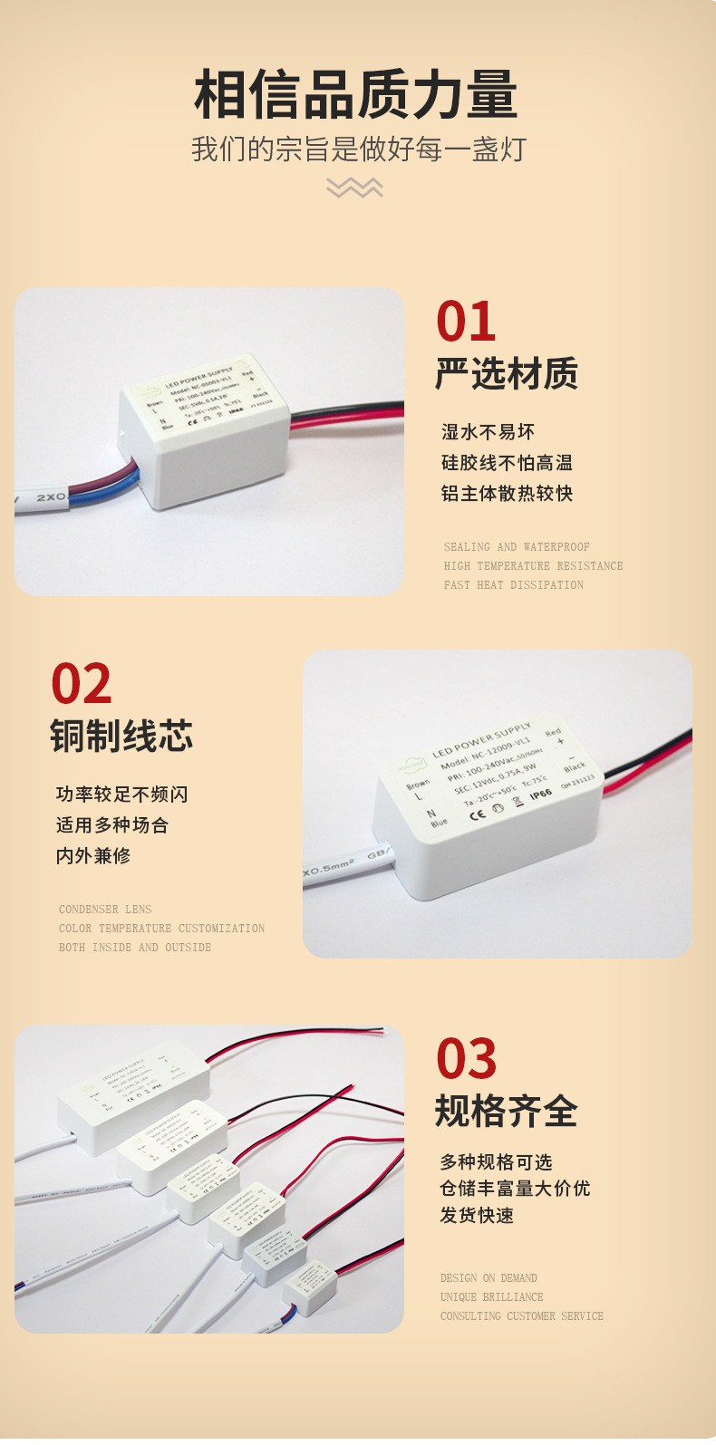 | NC-06005-VL1 | 1-5W | 85-277Vac | 3.3Vdc | 850mA | >75% | >0.5 | 3 years | Plastic (anti-fire) IP20/IP66 | 23*15*15mm | 27*22*19mm | 30g |